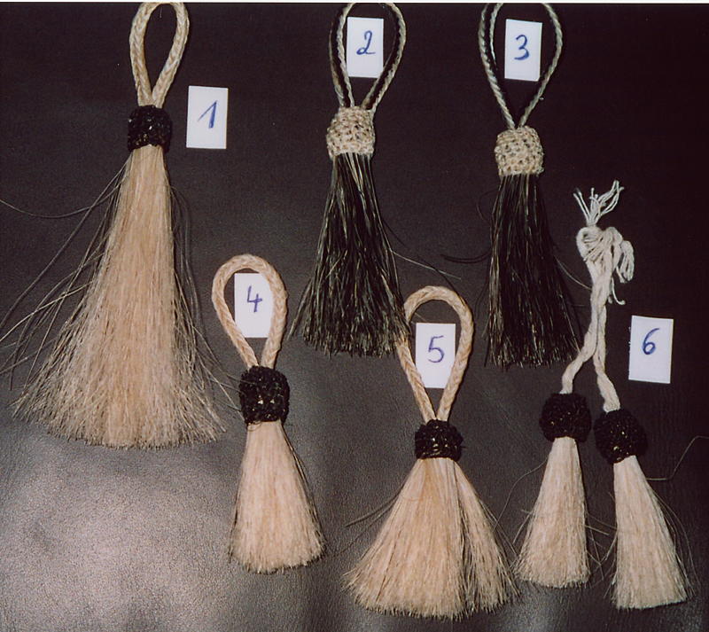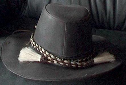 Braiding bedeutet so viel wie flechten. 8-12 zusammengedrehte Pferdehaare werden zu Zöpfen geflochten.Mit Leder ergibt das einen runden Zopf,mit Pferdehaar wird der Zopf viereckig. Diese Zöpfe kann man aneinander nähen und daraus entstehen dann Gürtel,Hutbänder ,Trensen,u.v.m. |